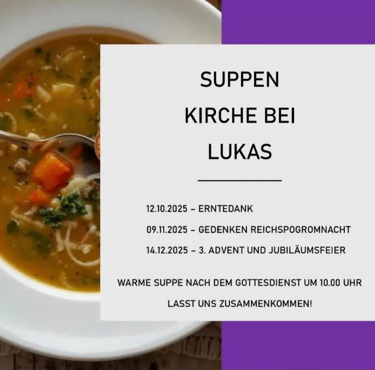Wir haben keinen festen Turnus für unser Essen - und es gibt auch jedes Mal etwas anderes, meistens aber eine kräftige Suppe und gutes Brot. Im Vorraum der Lukaskirche ist genug Platz für alle, die Lust haben - und es kostet nichts. An Ostern haben wir 2025 auch ein großes Frühstück angeboten.